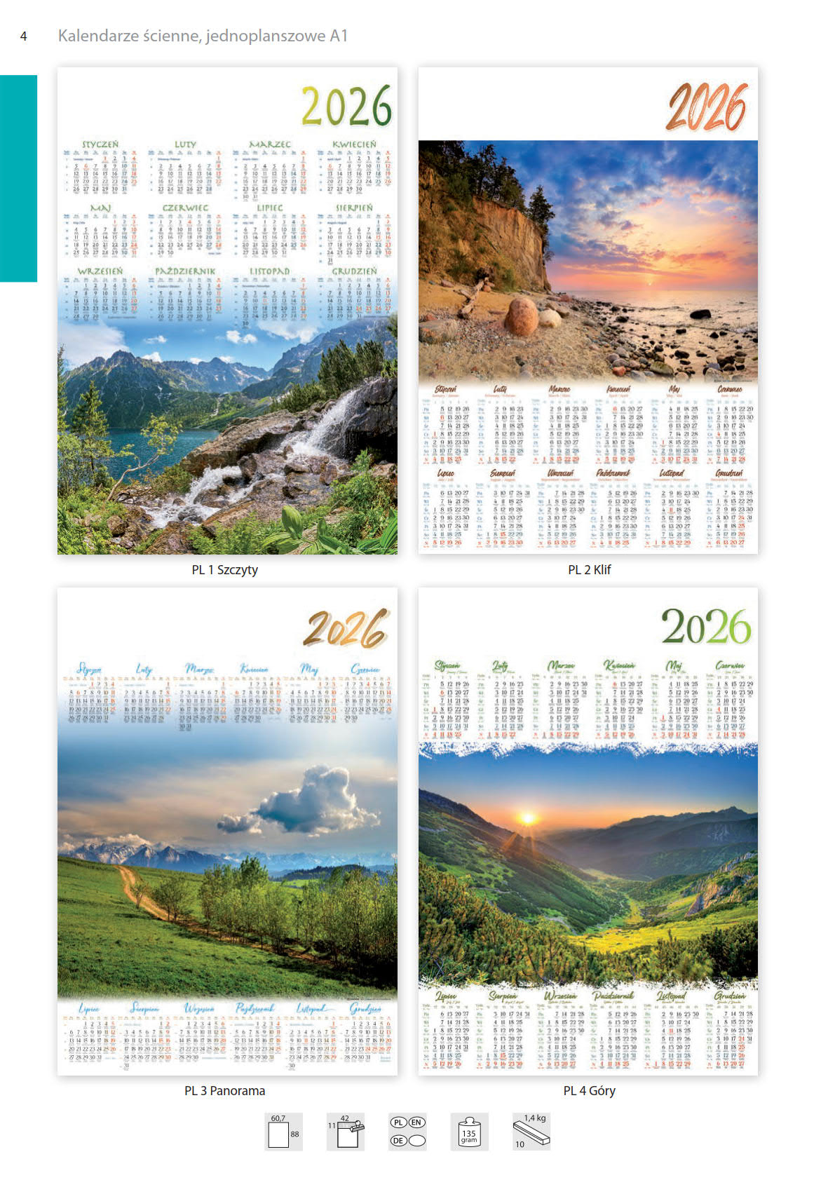 Ścienne kalendarze w dużym formacie, idealne do gabinetów i biur.
